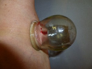 Beim blutigen Schröpfen behandelt man ausschließlich umschriebene heiße Gelosen (Füllegelosen). Beim blutigen Schröpfen legt der Arzt bestimmte Punkte fest, an denen die Haut leicht eingeritzt wird. Anschließend werden Gläser so aufgesetzt, daß ein Vakuum entsteht. Unter diesem Sog füllen sich die Gläser mit Schlackenstoffen und Lymphe.